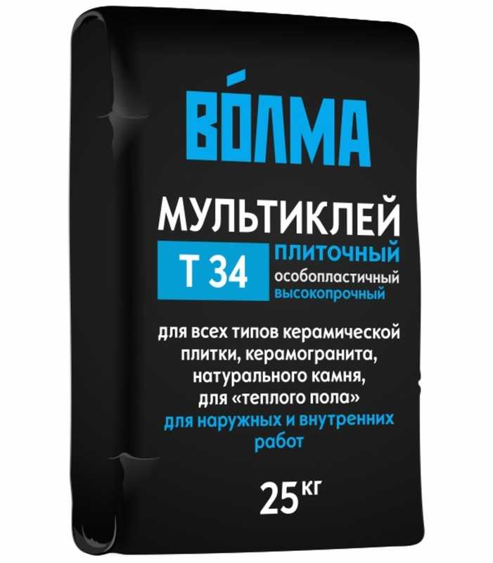 ВОЛМА-Мультиклей - сухая клеевая смесь на основе портландцемента, фракционированного кварцевого песка и комплекса модифицирующих полимерных добавок. Особо пластичный, высокопрочный. Для всех типов плитки, керамогранита, натурального камня, "теплого пола". Для внутренних и наружных работ. Можно использовать для облицовки бассейнов внутри помещений.